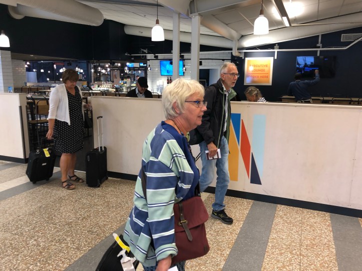 Nu sitter jag tillsammans sju andra i vår resegrupp på Skavsta och väntar på flygavgång. Det ska bli spännande att komma till Bulgarien – se landet och möta människorna. Nu stiger vi snart ombord. Här några av mina reskamrater.