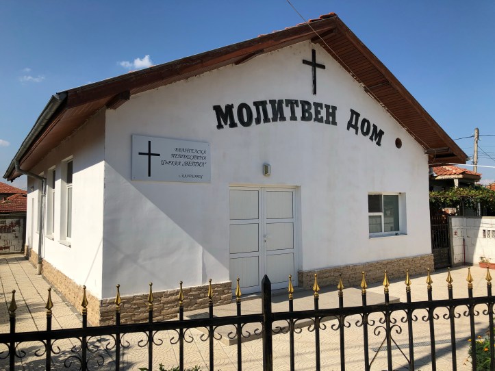 Vid fyratiden åkte vi iväg till några byar utanför Plovlid. Vi stannade först till vid denna kyrka, men där skulle vi inte ha något möte. Även om vi inte kunde komma in i kyrkan och se hur den såg ut invändigt kunde vi konstatera att den utvändigt var bland de finaste vi sett hittills för att vara i ett romskt område. Byn heter Kalekovets.
