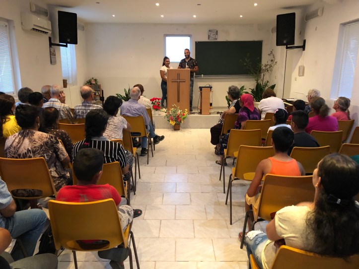 Väl inne i kyrkolokalen såg det ut så här – enkelt men fräscht. Och många tacksamma lyssnare.