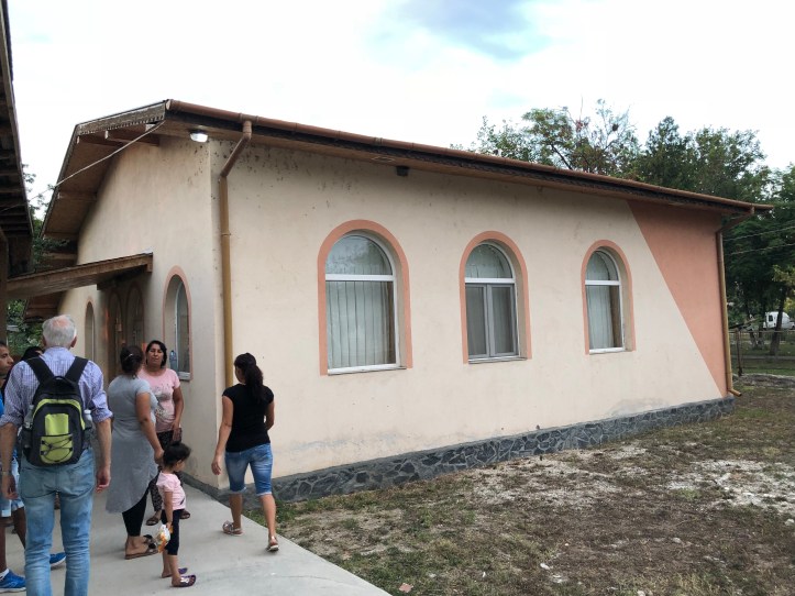 Efter lunchen var det dags att åka vidare till den romska byn Staro Zhelezare och ha en samling i en trädgård hos en romsk familj. Vi satt vid ett långbord under en pergola som dignade under mognade vinrankor. Killen som spelar gitarr är praktikant i den här romska gruppen. De sjöng för oss och vi för dem. Det var en mycket fin stund.