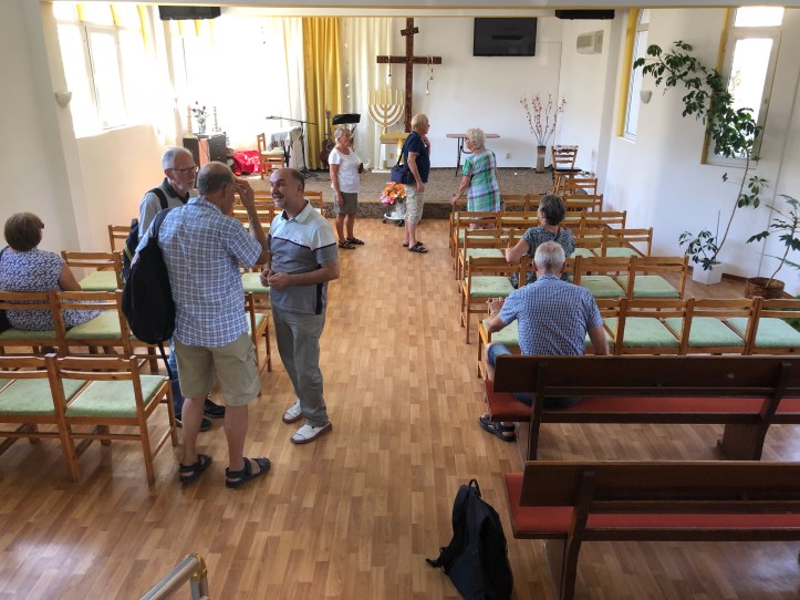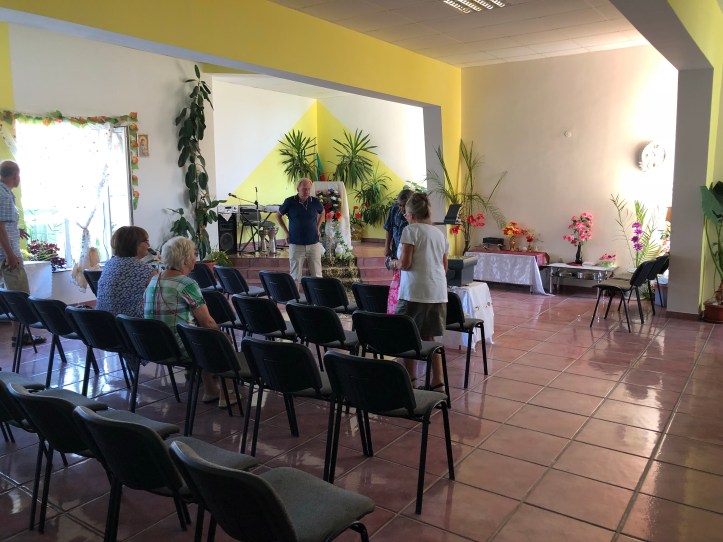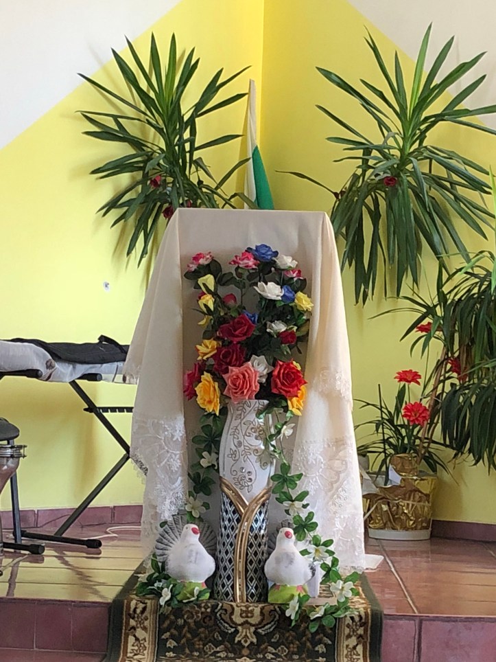 Så åkte vi vidare till Emils kyrka. De som tillhör denna kyrka är främst bulgarer. Emil berättade om verksamheten. Så här ser kyrkan på ut- och insidan.