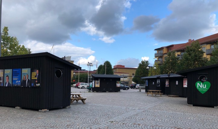 Ett gott tecken i lokalpolitikens Kumla och säkert inte bara här, är ju att partiernas valstugor är på samma plats och ser precis likadana ut. Förhoppningen är ju att de moln som syns på bilden på bilden inte skulle vara en symbolisk antydan om orosmoln över vår stad och vårt land.
