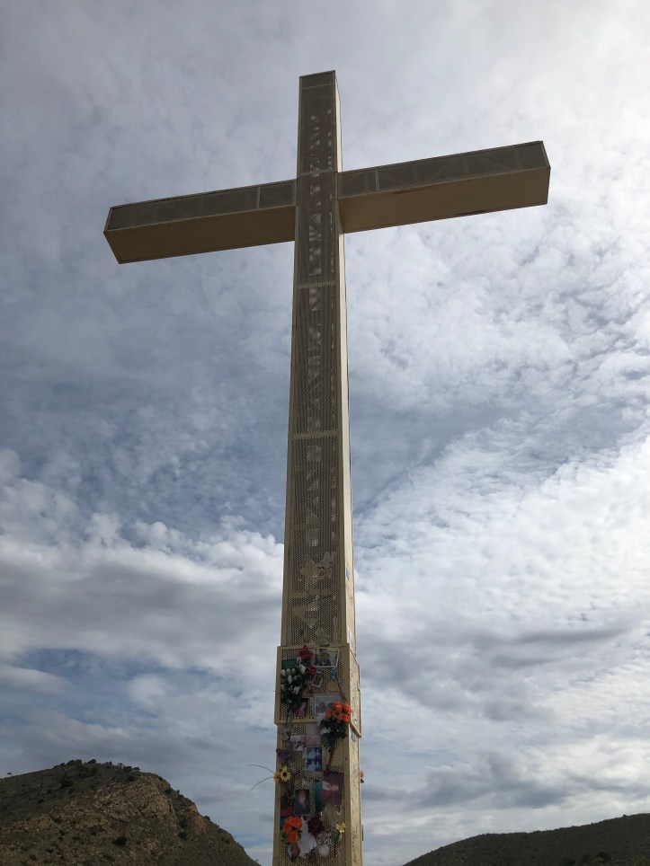 Det var i början av 1960-talet som det första korset bars upp från en kyrka i Benidorm. Det restes på denna plats av några munkar som ville markera ett avstånd till den utveckling som skett i staden, med tanke på den växande turismen, som lett till att Benidorm fått ett rykte om sig att vara en syndens stad. Sedan dess har korset bytts ut några gånger.