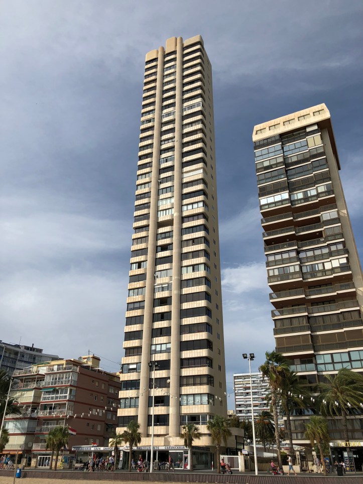 Nu har vi varit mer än halvtid av vår Benidormsvistelse. Det är väl på tiden att visa hur vi bor. Det här är vårt hotell från utsidan: