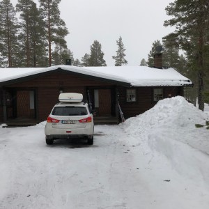 Efter handlingen ställde vi in stugans adress på GPS:en och hittade utan problem rätt stuga. Den låg i området Orrliden. Det var ett parhus med två lägenheter. När vi höll på att lasta ur bilen kom våra grannar i andra lägenheten hem. Det var en barnfamilj från Skåne.