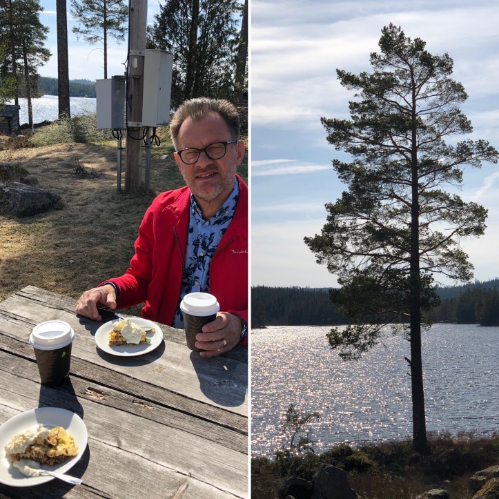 Vi stannade för lunch och kaffe vid Långsjöns matservering där vi åt oss mätta och njöt av en vacker sjöutsikt.