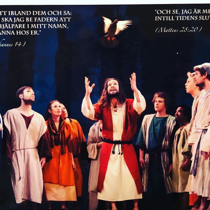 I första akten fick vi följa bibelberättelsen från Jesusbarnet i krubban till instiftandet av nattvarden och många av berättelserna om Jesu liv tillsammans med lärjungarna däremellan.