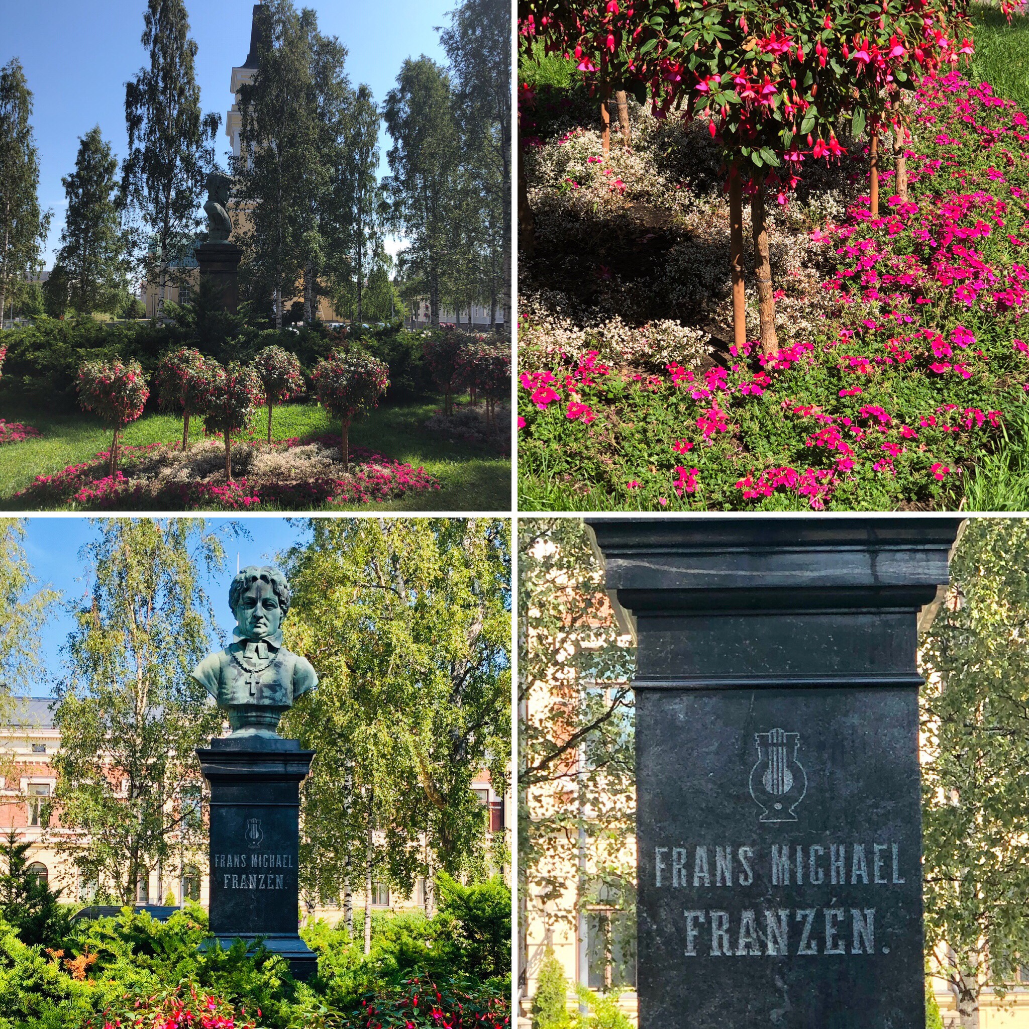 Det var utanför domkyrkan jag gjorde den stora upptäckten. Något som innebar att det finns en annan koppling mellan Kumla och Uleåborg än att jag, som bor i Kumla, har en kusin som bor i Uleåborg. I den lilla parken ett hundratal meter från domkyrkan fick jag se en staty. Jag gick närmare och såg namnet på den person som statyn föreställde – Frans Michael Franzén. På en gång gick associationsbanorna i mitt huvud igång. Namnet kände jag ju igen som mannen som skrivit några av de mest kända psalmerna i vår psalmbok – adventspsalmen ”Bereden väg för Herran” och påskpsalmen ”Vad ljus över griften, han lever, o fröjd”. För att få en förklaring till varför Franzén står staty i Franzénparken utanför domkyrkan i Uleåborg var jag tvungen att googla. Jag fann då att Uleåborg var Franzéns födelsestad.