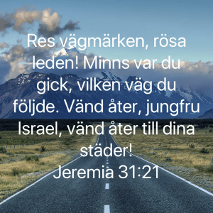 Så kan det också vara på vår resa genom livet. Vi kör på och rätt som det är upptäcker vi att vi kör på en väg som inte leder till det mål vi hade tänkt oss. Vad kan vi göra då? Jo, det finns en vändplats. Vi kan köra åt sidan en stund, in på den vändplats som i kristen tro benämns omvändelsens plats vid Jesu Kristi kors. Där kan vi korrigera riktningen i våra liv så att vi kan fortsätta livsresan med målet klart i sikte.