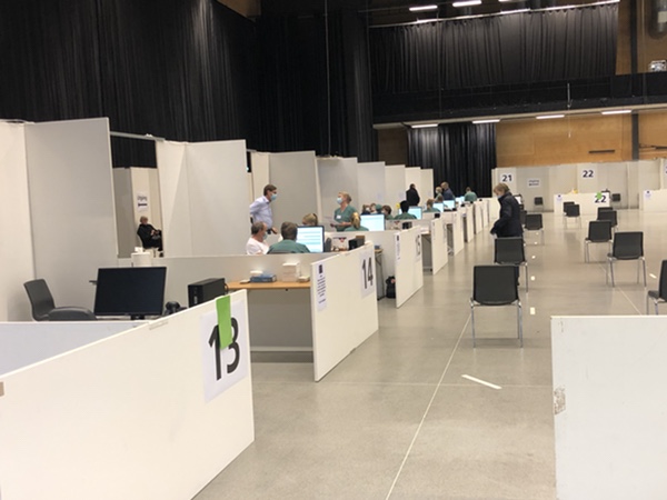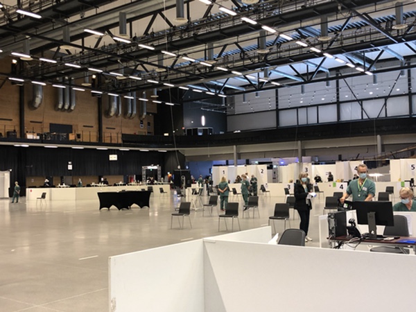 Så här såg det ut i vaccinationslokalen – ingen trängsel precis: