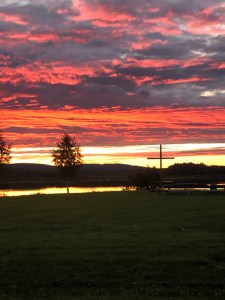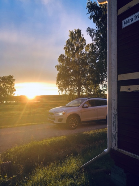 När vi vid elvatiden på kvällen stannade till vid kyrkstugan möttes vi av en strålande solnedgång. Det var helt magiskt. Men nu var inte tid att njuta av solnedgången. Vi skulle bara ställa av släpkärran i Norrfjärden och dra vidare mot Luleå, där vi skulle sova hos Ann-Catrines bror och svägerska. Först skulle vi dock mellanlanda och hämta lägenhetsnyckeln hos dem i deras stuga på Möron. Så vi hade en god stund kvar innan vi kom till ro den natten.