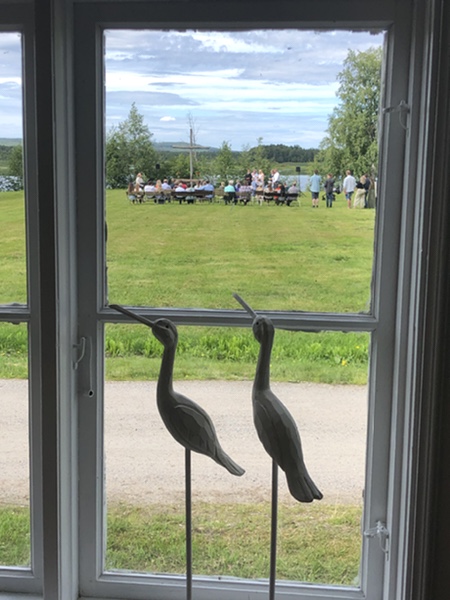 Vi höll ju inte bara på med arbete hela tiden. Vi umgicks en hel del med Ann-Catrines bror och svägerska och träffade andra goda vänner och deltog också i aktiviteter som anordnades genom Norrfjärdens församling. En lördag kunde vi följa ett barndop vid friluftskyrkan från vårt fönster mot fjärden. Det var trevligt.