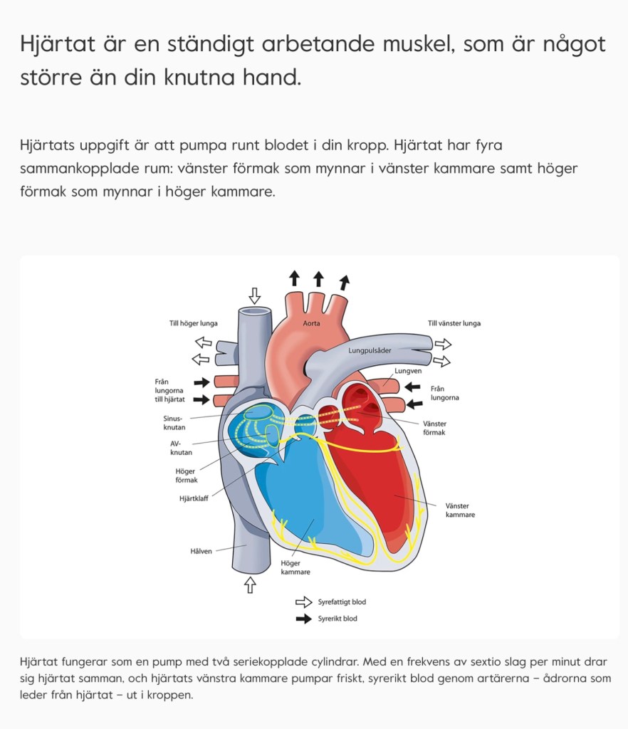 Det fysiska hjärtat i vår kropp, lite till vänster bakom den vänstra revbensraden: