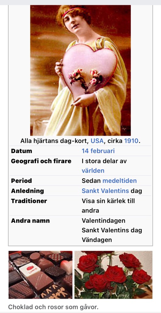 Vill du veta mer om Alla hjärtans dag kan du gå in och läsa på denna länk: https://www.nordiskamuseet.se/aretsdagar/alla-hjartans-dag?id=4