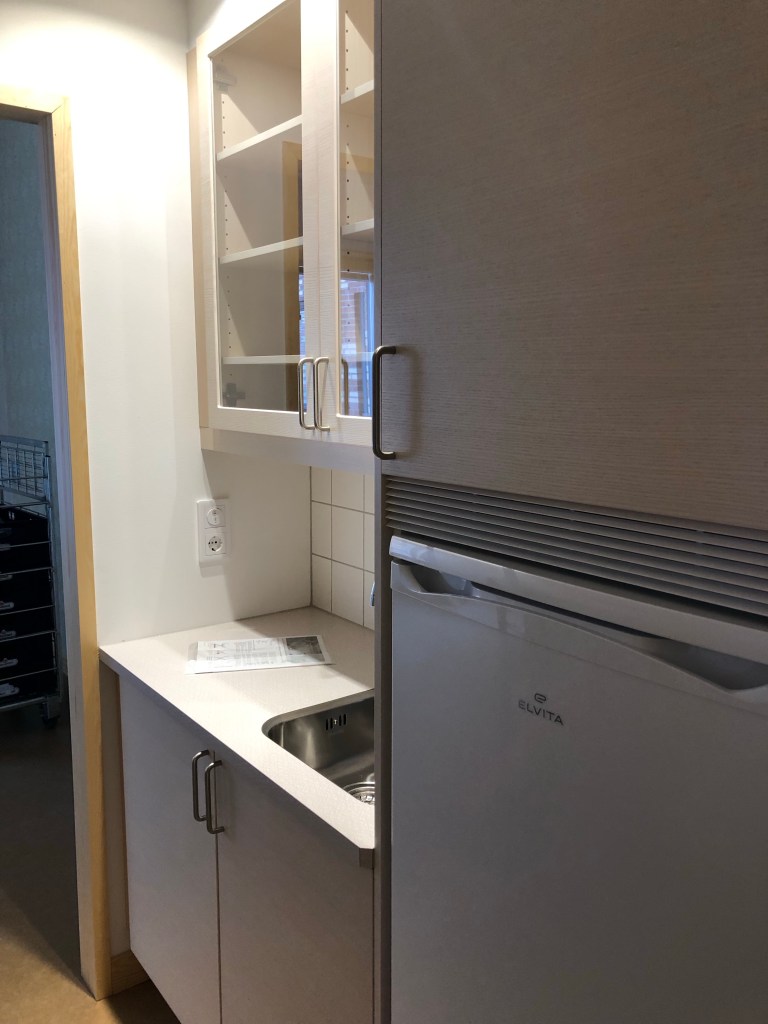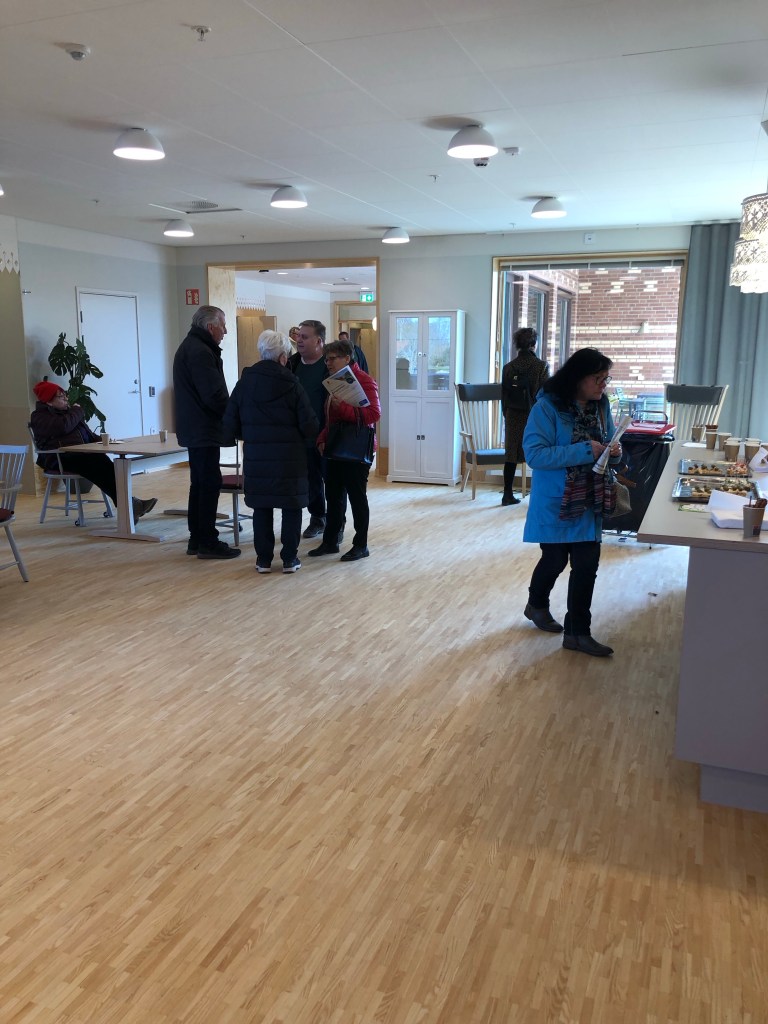 Många kumlabor hade hörsammat inbjudan och kommit för att se de nya lokaliteterna, som jag tror gav ett gott intryck hos de flesta. Säkert bidrog vädret till den positiva upplevelsen. Många av besökarna torde ju vara presumtiva brukare i detta äldreboende, åtminstone i ett längre perspektiv. Så då är det bra om dagens upplevelse blev positiv. Sedan återstår det att se hur det blir när verksamheten är igång.