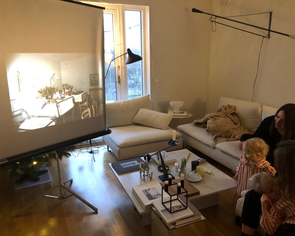 På den rätta dagen firade vi med familjen. Förutom oss två, vår dotter Caroline, sonen Per-Emil och hans fru Johanna och deras båda döttrar, Rut och Maj. Vi träffades vid lunchtid på Stora Hjortstorps Gård, som ligger i närheten av Rynningeviken i nordöstra delen av Örebro. Där åt vi en god lunch tillsammans. Fritt val ur menyn. Efter lunchen fortsatte vi gemenskapen hos Caroline, med diabildsvisning från olika perioder under vårt äktenskap, därefter fika, tal och presentutdelning. För att det skulle kunna bli någon bildvisning var det tvunget att av två icke fungerande diaprojektorer, reparera så att vi fick en fungerande. Det ordnade min fru på morgonen, händig som hon är.
