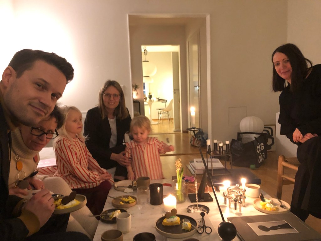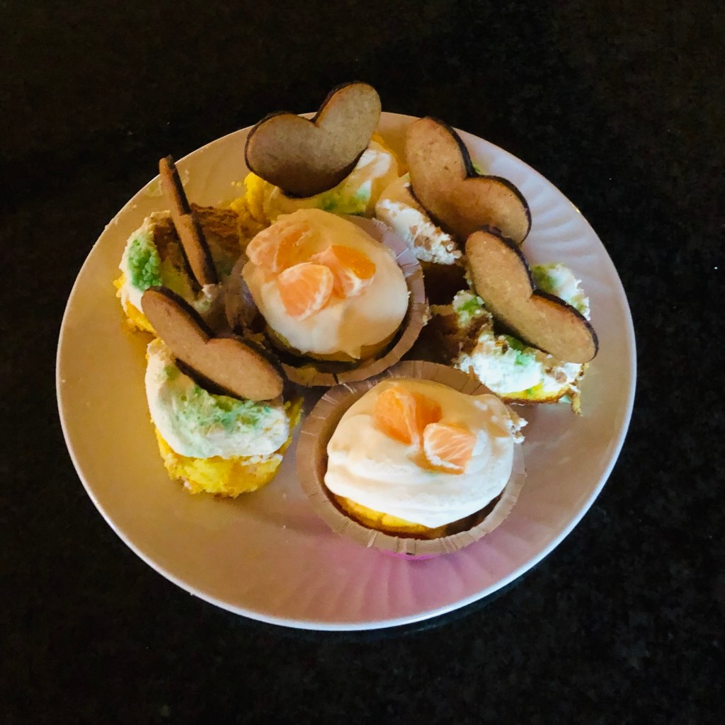Nu var den lyckade familjedagen över. Vi åkte hem till Kumla och började förbereda ytterligare en del i firandet. Efter söndagens gudstjänst tänkte vi bjuda på en bakelse vid kyrkkaffet. Sex rulltårtor skulle bakas och fyllas med lingongrädde. Det tog några timmar att göra detta. På söndagsmorgonen skulle rulltårtorna skäras och garneras. Buketten med rosor som vi köpt till dagen för vårt firande – en ros för varje år- ställde vi på serveringsbordet, till allas förtjusning. Bakelserna blev både uppskattade och uppätna. Rosbuketten tog vi med oss hem.
